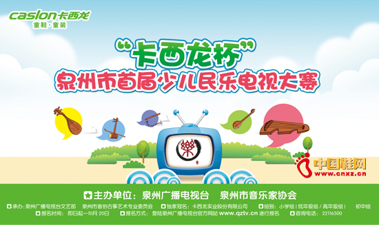 【中國鞋網-品牌動態(tài)】“杯”泉州首屆少兒民樂電視大賽,現(xiàn)已正式啟動!凡是喜愛民族樂器演奏的在校中小學生,均可報名參加!大賽分:小學組(低年級組、高年級組)和初中組。即日起至10月20日,接受報名!報名請登錄賽事官網:泉視界。咨詢熱線22116500。本屆賽事有卡西龍獨家冠名贊助!(中國鞋網-最權威