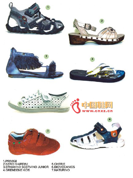 富有光澤、伴隨著閃耀的星星的昂貴的涼鞋專為小女孩設計。鮮艷的色彩為夏天帶去活力,彩虹色適合所有年齡:從初次穿的人到經常穿的人。為小男孩設計的皮制鞋和涼鞋有著色彩鮮艷的羊皮襯墊,圓頭運動鞋則帶有側面拉鏈。