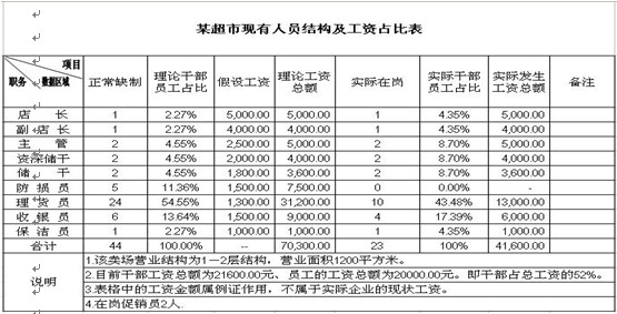 從圖一我們可以看出,無(wú)論從門(mén)店干部與員工數(shù)量比還是從工資總額比,該店都是超乎尋常。理貨員原編制24人,實(shí)際編制才10人,那么,清潔、價(jià)格、滿(mǎn)陳列等日常工作誰(shuí)來(lái)做呢?顧客可不想買(mǎi)回去的商品上面有一層灰。