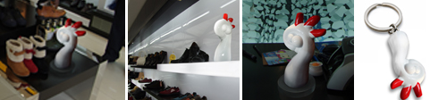 第五,巧使工藝,可以實(shí)現(xiàn)店仔成本的驟降:比如圖中的這個(gè)店仔“尚仔”,它是高尚的“尚”和商品的“品”字的抽象化,中間三個(gè)圓代表“品”,外觀像一只金剛鸚鵡,又像一個(gè)“OK”手勢(shì)。店仔的主人是一個(gè)二、三線城市的小型鞋類集成店,最開(kāi)始準(zhǔn)備以玻璃鋼為材質(zhì),但面對(duì)1.6米高造價(jià)就要3萬(wàn)多萬(wàn)后十分猶豫。最后在工藝師傅的建議下改用高密泡沫板切割內(nèi)胎,打磨成型之后貼網(wǎng)上底膠,上膩?zhàn)樱蚰ィ詈笊厦嫫帷?.6米高的店仔,最后材料成本才600元!即使算上美工、油漆工等成本,總成本也不超過(guò)3000元。最關(guān)鍵的是,當(dāng)“尚仔”擺進(jìn)店內(nèi),這一“怪物”吸引了眾多消費(fèi)者進(jìn)店,客流量大升,反響非常不錯(cuò)。