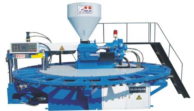 1 本類機械有吹氣功能專用于生產各種高級單色一體成型吹氣拖涼鞋,成品比重輕、柔韌、表面光澤。