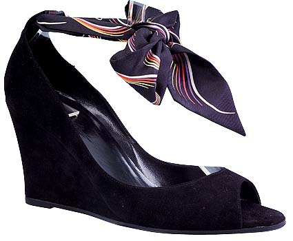 有絲巾系踝的黑色麂皮楔跟鞋,Hermes