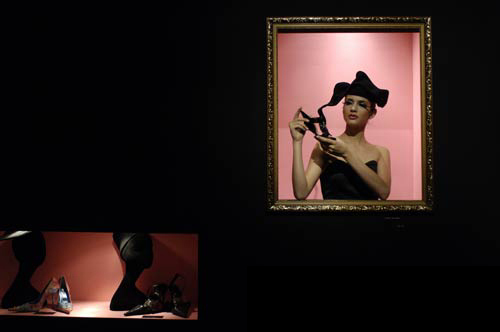 鞋子,總散發(fā)著令人心動的誘惑,可以抵受這誘惑的女士實在寥寥無幾。正因如此,水晶誘惑系列便借用六種最常見的誘惑來示范各款水晶鞋,分別是“起舞”、“自由”、“權(quán)力”、“貪欲”、“炫耀”和“貪吃”。透過這些演繹手法,耀眼的水晶鞋散發(fā)著令人傾醉迷戀的光芒。在“起舞”中,歌劇女主角渴望聽眾把鞋子穿在她的手上。在寧靜致遠(yuǎn)的“自由”花園中,閃爍的鞋子尤如繁花盛放,在樹叢中透射光輝。路易十四的華麗椅子,充分象征著“權(quán)力”,椅腳伴隨著水晶杰作。意態(tài)撩人的美腿,加上雙足裹以燦爛奪目的水晶鞋,誘發(fā)無盡的“貪欲”。以鞋來裝飾黑色頭部剪影則極盡“炫耀”。白色的巨石“饕餮桌”上,精致的鞋品在白色餐碟上展示,閃出五光十色。