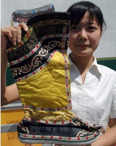 在展臺前,數(shù)千名市民對此都表示出極大的興趣,在觀看古人所穿的各式鞋履后對其精湛的做工嘖嘖稱贊。