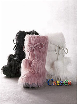 皮毛寒冷的冬季與溫暖的皮毛從來就不可分割,這使得款式百變的皮毛靴越來越受到歡迎。特殊的質地使其天生帶有濃重的裝飾味道,奢華 中散發一絲古典,華麗得恰到好處。不管是材料、覆蓋面積以及顏色、造型等方面,都帶出更多的驚喜。