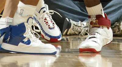 圖為NBA活塞隊(duì)與騎士隊(duì)比賽中,怒吼天尊華萊士與小皇帝詹姆斯的對(duì)抗鏡頭,倆人在NBA賽場(chǎng)上的對(duì)抗不是第一次了,而且以后還會(huì)更多,不過能看到他們倆人腳上的鞋(NIKE AF1 VS NIKE LB4)對(duì)抗的機(jī)會(huì)也許不會(huì)再有那么多了,作為唯一一個(gè)從復(fù)古鞋流行一開始就穿著征戰(zhàn)NBA賽場(chǎng)至今的華萊士,一直穿著NIKE AF1比賽,而小皇帝詹姆斯作為NIKE新一代超級(jí)代言人,一直是穿著頂級(jí)籃球鞋比賽。