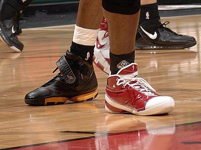 不過倆位超級明星的戰(zhàn)斗并不止在球技上和球隊的勝負上,倆人的球鞋也成了大家關注的焦點。韋德是CONVERSE的當家代言人,科比是NIKE的主打代言人之一,而且二人也同時擁有各自的個人專署簽名籃球鞋。韋德當天穿上了圣誕節(jié)版的WADE1.3戰(zhàn)靴,而科比穿上了NIKE為其設計的最新款籃球鞋ZOOM KOBE 2。不過相比較來說,WADE1.3的紅色圣誕節(jié)配色讓本來就已經火暴的WADE戰(zhàn)靴會更加熱賣;而ZK2是鞋迷們千呼萬喚后終于浮出水面,足以在新年來臨之際大賣特賣一段。但也許是由于WADE1.3已經和韋德磨合過了一段時間,而科比的ZK2是剛剛穿上腳的原因,這場比賽韋德的發(fā)揮要比科比的表現(xiàn)更加出色。