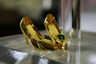 據臺灣“中廣新聞網”報道,臺灣傳統藝術中心即日起到3月舉辦“2007年臺灣金工大展”。全心投入金雕藝術創作、修習黃金首飾打造的楊璨豪,精心打造的迷你黃金高跟鞋,金光閃閃,貴氣逼人,精致的手工令人贊嘆。