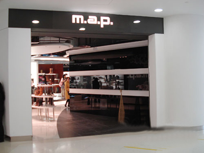 M.A.P (意為 Multiple多樣的. abundance豐富充裕. plenty大量的),正如店名的含義, M.A.P精心裝飾的店內購物環境,讓繁忙的購物時光輕松愜意;完善齊備的貨品專區,網羅了國際時尚前沿各種不同風格的流行新款,相同的購物時間滿足不同顧客多樣化的需求,錯落有致的商品陳列,琳瑯滿目的時尚新品總有一款適合你。