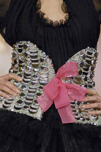 “這正是Chanel 的聰明之處!贝汤C師Francois Lesage 說, “他們的目的是讓其他品牌也能留在高級定制時裝圈里面,否則游戲就不好玩了!盠esage 的刺繡作坊如迷宮般地分隔為12 個區域,有十幾名女繡工為他工作。即便是給V 字領加上裝飾線這樣的簡單活計也需要花費約20 小時,而像Jean Paul Gaultier1998 年推出的Trompe l'oeil 風格豹紋裙這樣的大作品,至少得花費500 小時才能完成。