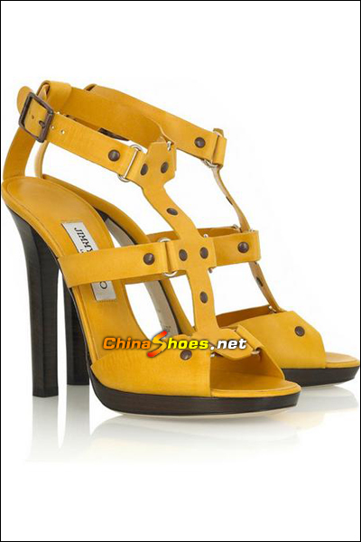 黃色是春天不可缺少的顏色。就像這款Jimmy Choo 2009春夏女士黃色皮質(zhì)高跟鞋,淡黃的色調(diào),T型臺(tái)般的鞋面及鉚釘?shù)脑O(shè)計(jì)均讓你感受到帥氣的中性氣息。如果你厭倦了柔美,不如試一下這款充滿著中性帥氣的時(shí)尚高跟鞋吧。