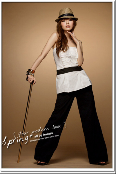 中國風(fēng)材質(zhì)的褲裝,麻質(zhì)的面料在炎炎夏日更加的透氣涼爽!這時當然少不了一件寬松的褲裝。以麻質(zhì)來營造一種飄逸的質(zhì)感,一點點的休閑感、一點點的名族風(fēng)情。黑色吊帶上衣是聰明的選擇,既然下身面積大塊那不妨試試上面性感一點!