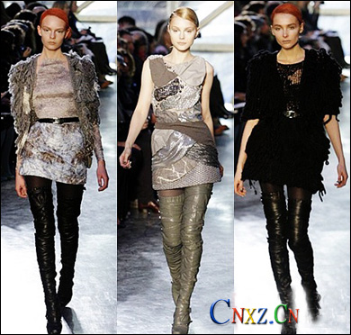 基于近年來大熱的未來系著裝潮流,許多設計師都在緊身過膝高筒中加入了許多未來元素。比如Rodarte和Topshop Unique秀場上的款式。對于這個潮流在下幾季里我很期待見到更好的詮釋。