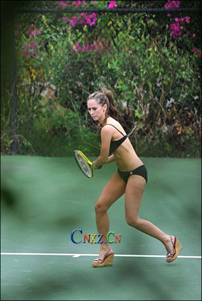 據英國媒體8月16日報道,美國女星珍妮弗洛芙休伊特與男友在夏威夷渡假時,身穿比基尼腳踏高跟鞋一起打網球,而且連破男友2次發球局。