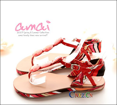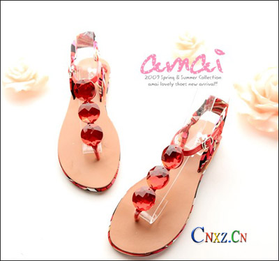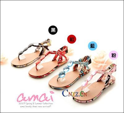 【中國鞋網】柔軟的日本進口彩繪緞布繫帶&整體涼鞋側面也都採同樣緞布,讓人穿上就不禁大呼cawaii~!夾絞帶上的多切面璀璨寶石點綴,讓擔心T字夾腳容易讓腳丫太過裸露的甜心完全可以安心穿出門~!不論選擇哪一個顏色都和真夏氣氛match指數100%!平常簡單搭配圖案T恤&短褲or下半身選擇窄管褲讓比例更修長也十分IN~!