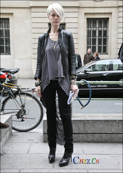這位不用我介紹了吧?!大家都認識的百發魔女Kate Lanphear。不過這款Helmut Lang的皮夾克就不知道是新版還是古董了。混搭了一些大眾牌子的服裝,LEVIS的仔褲,YSL的靴子,Kate Lanphear依舊還是堅持著自己的風格!