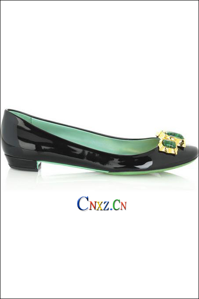 尋找一個新穎的方式來搭配你的珠寶吧,MIUMIU的平底鞋正是它們的最佳點綴。它們可以成為你基本日常形象的高貴必備品。平底鞋的前部鑲有金色和珠寶綠色的精致扣帶,方形鞋頭以及稍平的鞋跟,讓你的夏天更加輕便、舒適。