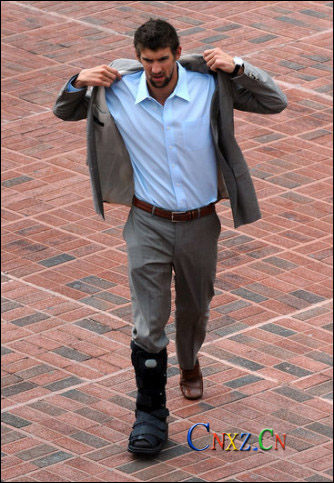 【中國鞋網】奧尼爾在一檔名為《對決大鯊魚》(《Shaq Vs。》)的真人秀節目中輪番對決其他體育項目中的巨星級選手。很久以前奧尼爾就對北京奧運八金王菲爾普發出了挑戰,近日二人舉行了一場發布會。圖為菲爾普斯厚重保護鞋。