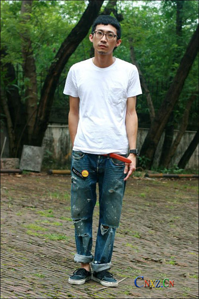 你一定認(rèn)為最出彩的就要算這條破牛仔褲了吧?其實,最出彩的應(yīng)該是腰間的那條紅色皮帶和黃色徽章的搭配。