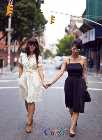 一對時尚姐妹,都是墨鏡達人。連衣裙的穿著一個是優雅。一個是性感。