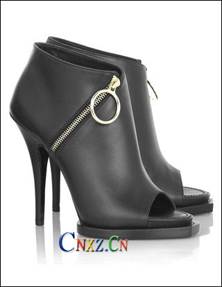 魚嘴鞋頭的設計讓腳趾露出,圓環型的拉鏈設計充滿著女強人強勢,精煉的感覺。