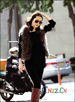 簡單的純色上衣搭配修身的打底褲略顯普通,無論你是搭配長衫還是短褲總會有點不夠分量的感覺,搭上一件同色系的長毛夾克以及長款的皮靴就能讓整個搭配異常出彩!