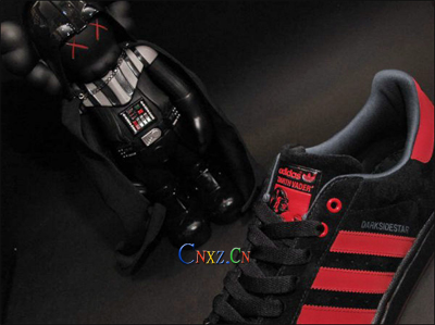 中國鞋網04月13日訊,近日CLOT官網繼陳冠希公布后部諜照后,再次放出CLOT設計adidas x Star Wars黑武士DARKSIDESTAR鞋款細節。從圖中我們已能推測出這款DARKSIDESTAR的風貌,Darth Vader黑武士主題黑紅鞋身,紅色為3M反光材質,鞋身印有DARKSIDESTAR字樣,配有黑色鎖鏈鞋帶裝飾,鞋舌為黑武士圖案,后跟有Darth Vader黑武士LOGO和STAR WAR鋼印。