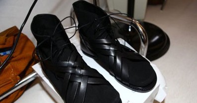 無獨有偶,在Damir Doma男裝2011春夏系列發(fā)布會上也看見了與迪奧那款非常相似的皮革涼鞋,可見,2011年的單鞋流行趨勢還是會有點皮革當(dāng)?shù)赖睦砟钤诶锩妗Fじ锏牟馁|(zhì)不僅柔軟而且設(shè)計出來的款式也非常的個性和時尚,難怪設(shè)計師們會對皮革情有獨鐘了。