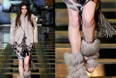 中國鞋網09月14日訊,縱觀整個2010秋冬T臺發布,皮草元素成為了貫徹始終的主旋律,當然我說的可不單單是鞋履,而是整個的時裝周——有三分之二的品牌都發布了帶有皮草的服飾品。不過相比于毛茸茸的皮草大衣,毛茸茸的皮草鞋似乎更加的惹人關注,當然如果上下都毛茸茸的,那絕對會引起轟動了!