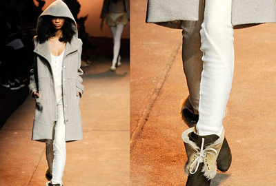 Thakoon 為不同種類的鞋子都做上了皮草裝點。其“功夫鞋”與皮草護踝的組合頗為另類。