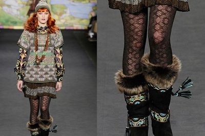 Anna Sui明顯走著一條異域風情路線,本季她還是依舊玩著熱的似乎過了頭的印花元素,而其裝點了印花元素與流蘇垂飾的皮草靴更加具有了蒙古或東歐的風情。而也正是因為如此,2010秋冬秀場上最值得買的皮草鞋就非它莫屬!