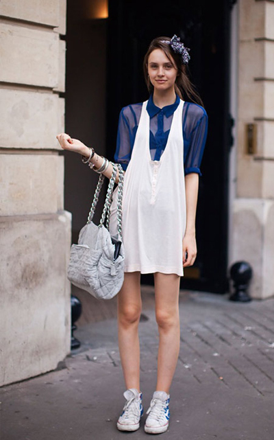 如果你熱愛透視襯衫,不妨再襯衫外面再加上一件。不論是吊帶裙,背帶褲,都是不錯的選擇。