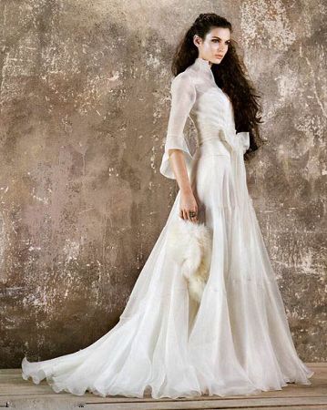 中國鞋網10月21日訊,婚紗融入皮草的元素是近幾年來奢華時尚的流行趨勢,此時的天氣進入了最寒冷的季節,選擇當個冬日新娘的你不妨在穿上婚紗的同時搭上皮草配件,既保暖又與輕柔的婚紗撞擊出別樣的風情來。