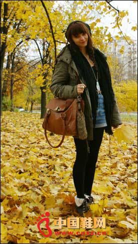 中國鞋網11月22日訊,短褲最常見的搭配就是絲襪,即使秋冬怕冷,選擇個厚一點的黑絲襪絕對能滿足溫度和風度的雙重需求,在鋪滿黃葉的秋日,別提有多美。