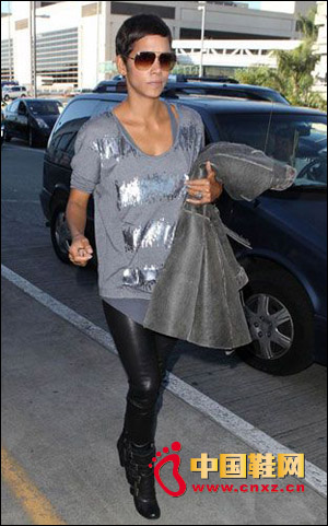 Halle Berry可是皮褲的代言人,中性帥氣的氣質加上瘦削的身材都與皮褲的風格非常相似,如果不想自己的身材太過火辣的話就可以像Halle Berry一樣上身搭配一件寬松的T恤,既有休閑的味道,有兼顧了摩登有型的風格。