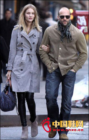 Rosie Huntington-Whiteley這么瘦的女孩兒穿緊身皮褲的結果只有一個,那就是展現一雙“筷子腿”。加上寬松風衣的反襯效果,一雙腿更是細得過火。