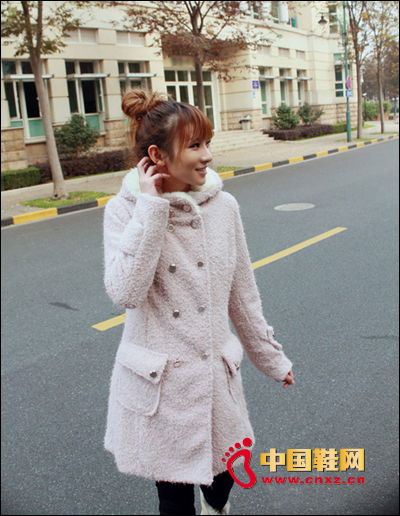 大衣的面料是貴妃絨,穿起來很淑女的感覺,整件大衣感覺上是軟軟的,不是那種很挺的,所以建議胖mm不要選此款,穿的感覺不好的話會顯胖