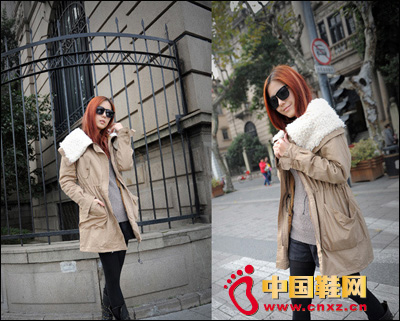 歐美軍裝羊羔毛抽繩夾棉大衣,今冬又卷土重來的軍裝風啊,獨立又自信的中長大衣,就這樣隨隨便便批著外套走在街頭,招搖美貌。