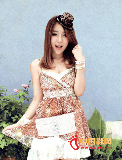 重疊感覺的菲邊衣袖,淡淡的色彩,搭配上豹紋的圖案,充滿了性感的味道。