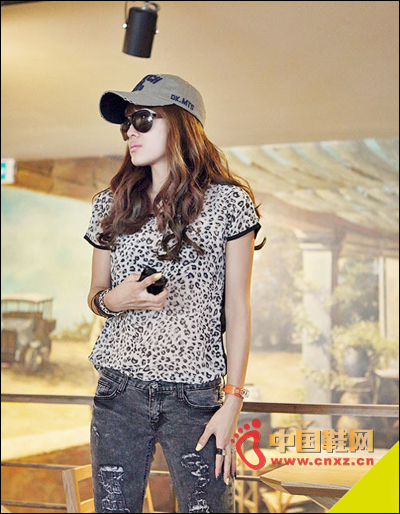 甜美搭配實物豹紋印花短袖T恤 豹紋主義又迅速回潮
