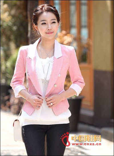 甜美的粉色系西裝外套 搭配簡單的牛仔褲就很美哦!