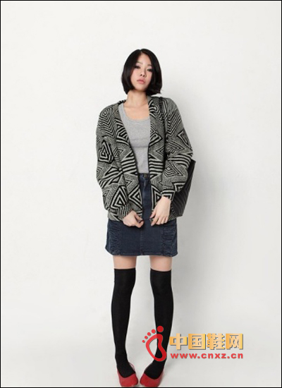 獨特幾何圖案的針織外套,拉鏈開襟的外套,敞開穿好像開襟衫,內有間棉襯里,有保暖效果。