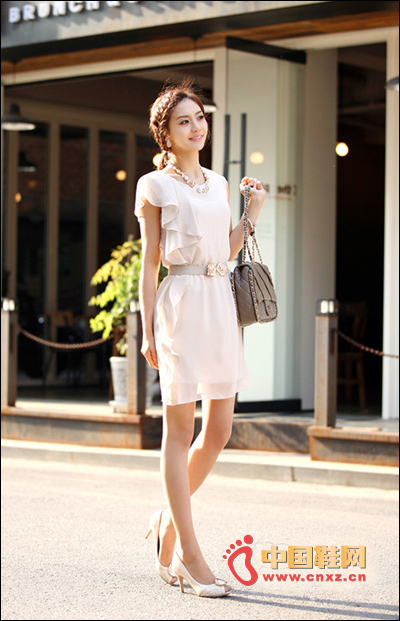 清純的顏色,加上精美腰帶裝飾,展現出女性完美的身材和性感。