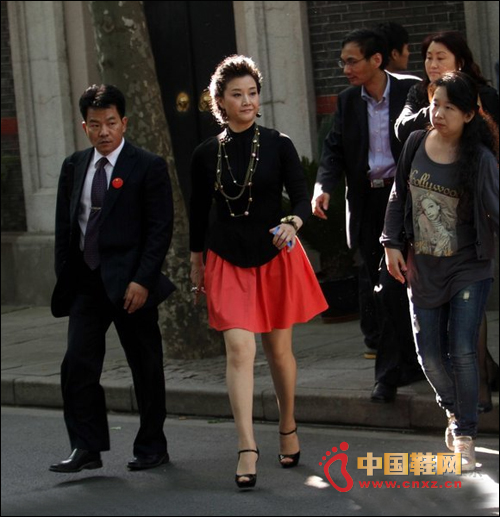 中國鞋網5月30日訊,上海,日前,宋祖英來到上海參觀剛剛重新裝修好的一大會址。她身穿黑色緊身上衣搭配桃紅色短裙,由四五名隨行人員陪同。參觀完畢,宋祖英一臉燦爛,心情大好的微笑著走上車趕往機場。