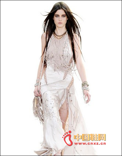 作為每季細節不同的流行常態,這一季流蘇帶有設計師們各自強烈的印跡。Louis Vuitton用珠串串成瓔珞綴在精致的高跟鞋下,這是山本寬齋風格的流變,亦是Marc Jacobs眼中身為女人的特權。 Roberto Cavalli把人帶到了熱帶小島,用飄動的水粉色系流蘇飄動告訴女人那里風的顏色和樣子,Emilio Pucci是輕松享樂的嬉皮士女孩做派,流蘇和綁帶結合在一起,不多,卻足夠纖細動人。Versace和Gucci短而參差的流蘇依然走大女人的路線,至于那條銀光閃閃的Oscar de la Renta斜肩流蘇長裙,則在奧斯卡頒獎禮上見證了Anne Hathaway從女孩到女人的蛻變。