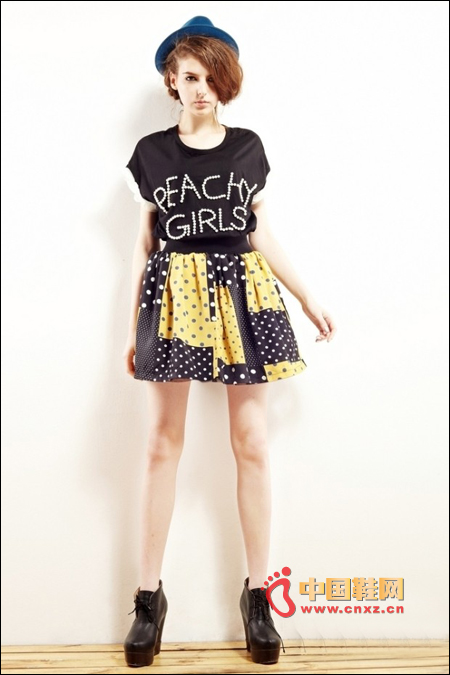 將波點與格子玩轉,仿佛親手縫制的布片裙 ,波點大大小小布滿裙身 鮮嫩的黃色與暗黑拼接,里襯帶來挺括感,華麗麗的宮廷意味,又似昨日里看的那場幽默話劇 內心喜悅 ,高腰設計拉長腿部線條,不論搭配復古厚底坡跟鞋還是輕松的板鞋,都造型感十足~!