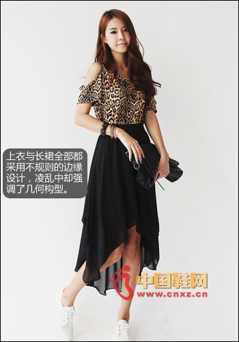 充滿華麗感的豹紋T顯出性感肩部,非常適合熟女。簡單的上衣和復(fù)古高腰雪紡裙的休閑風(fēng)搭配很好看,穿起來特別能夠顯現(xiàn)潮女的修長身段。豹紋和皮質(zhì)手包釋放出成熟氣場。