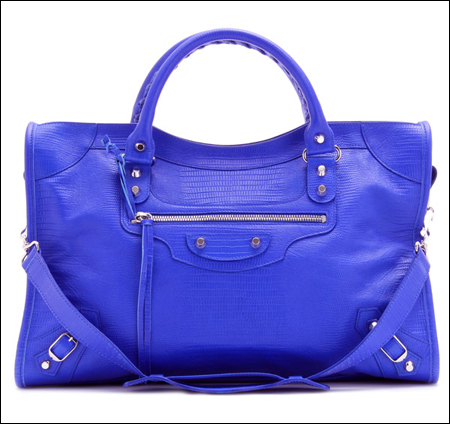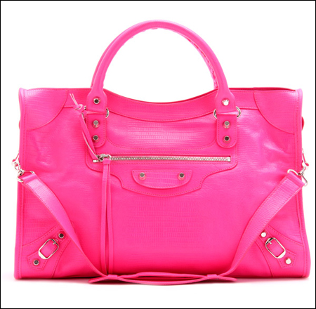 7月30日訊,Balenciaga 2011秋季最新的熒光色蜥蜴紋壓花小牛皮機車包已于7月28日在歐洲奢侈品網站開始獨家銷售,喜歡的同學們趕緊下手阿!該系列機車包有電藍、亮粉和熱橙三種色彩,售價1,045歐元。亮粉色新鮮上架,而電藍和熱橙色將在下周上線。