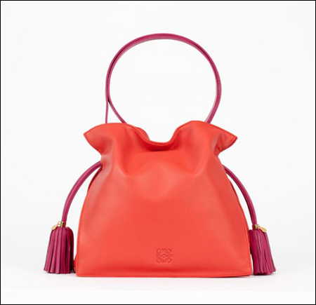 Flamenco手袋早在1984年就已在Loewe麾下誕生。去年,Loewe創意總監StuartVevers在手工坊的檔案中發現了它并決定讓它重獲新生,將原版改以更具摩登氣質的廓形比例,更加上了一條肩帶和一個超大流蘇墜飾。在誕生27年后的今天,Flamenco手袋在2011年秋季驚艷重回,全線包款提供明艷大膽的色彩選擇:從艷粉色、焰紅色、紫紅色到暗紫色和翠綠色:有單色的包款,或是帶有撞色細節的款式。