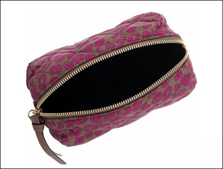 化妝包尺寸16cm×11cm×9cm,能放下你出行必備的所有化妝品。夾棉面料,金色橢圓銘牌上有Mulberry標志性LOGO,金色拉鎖上的灰色皮質裝飾很精致,黑色內里非常耐臟。售價105英鎊,net a porter有售。不過看起來和我們之前推薦過的一款Marc by Marc Jacobs的化妝包有些類似,同樣是紫色豹紋印花,你更愛哪個呢?